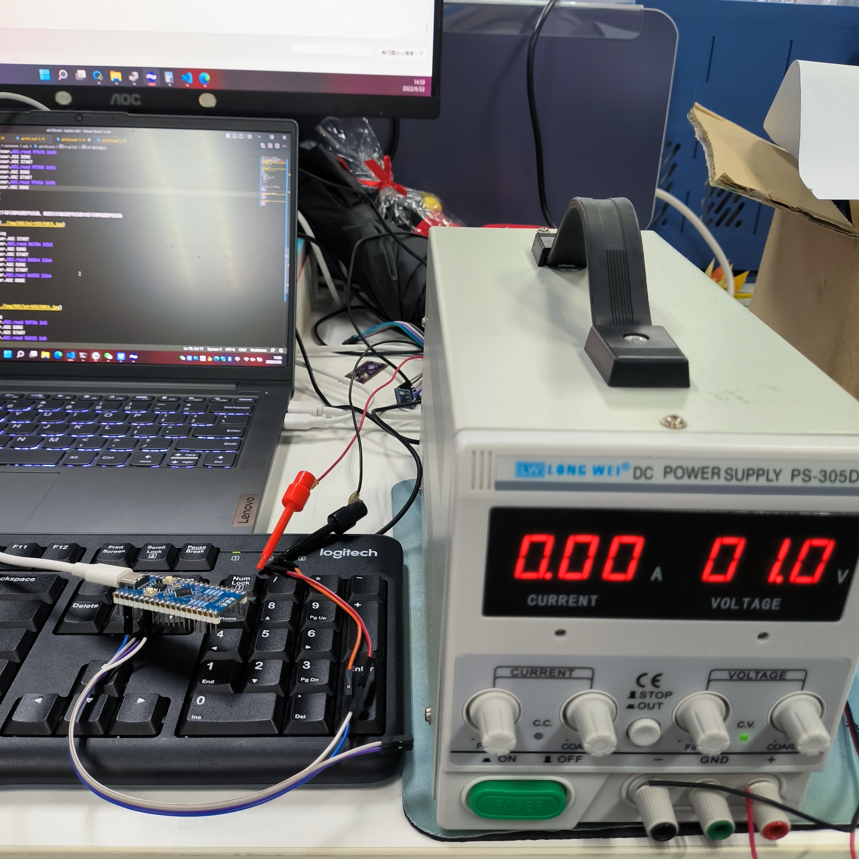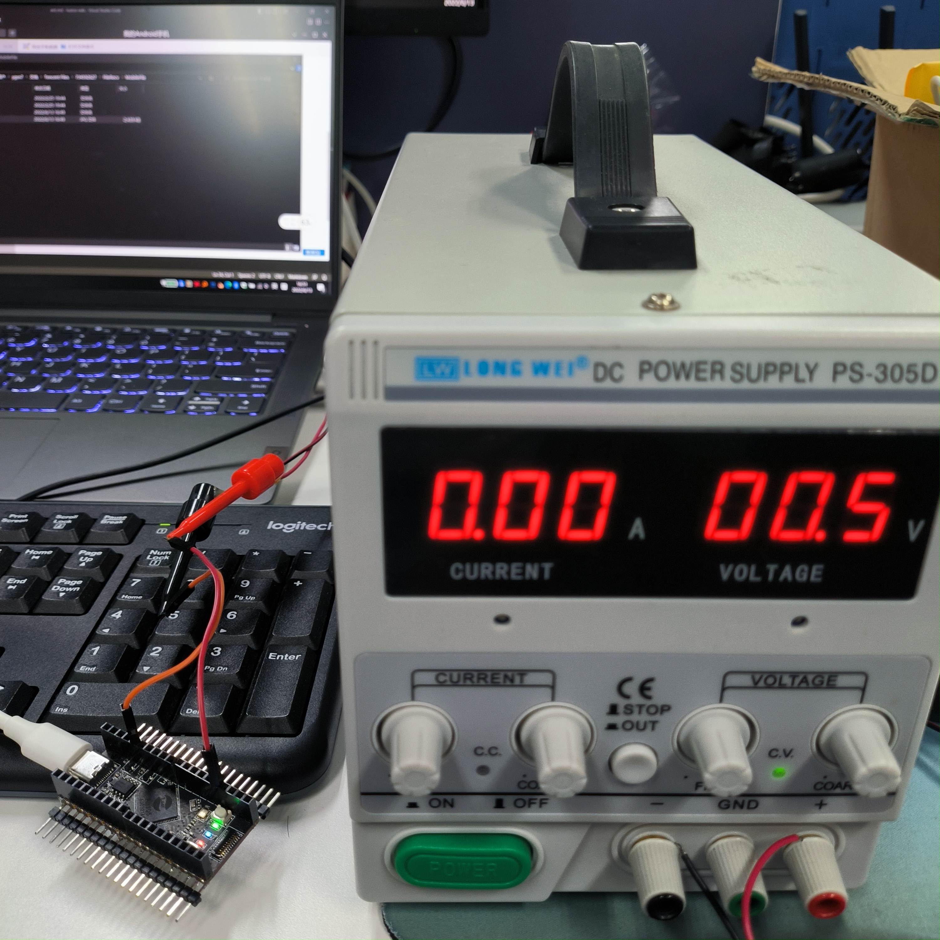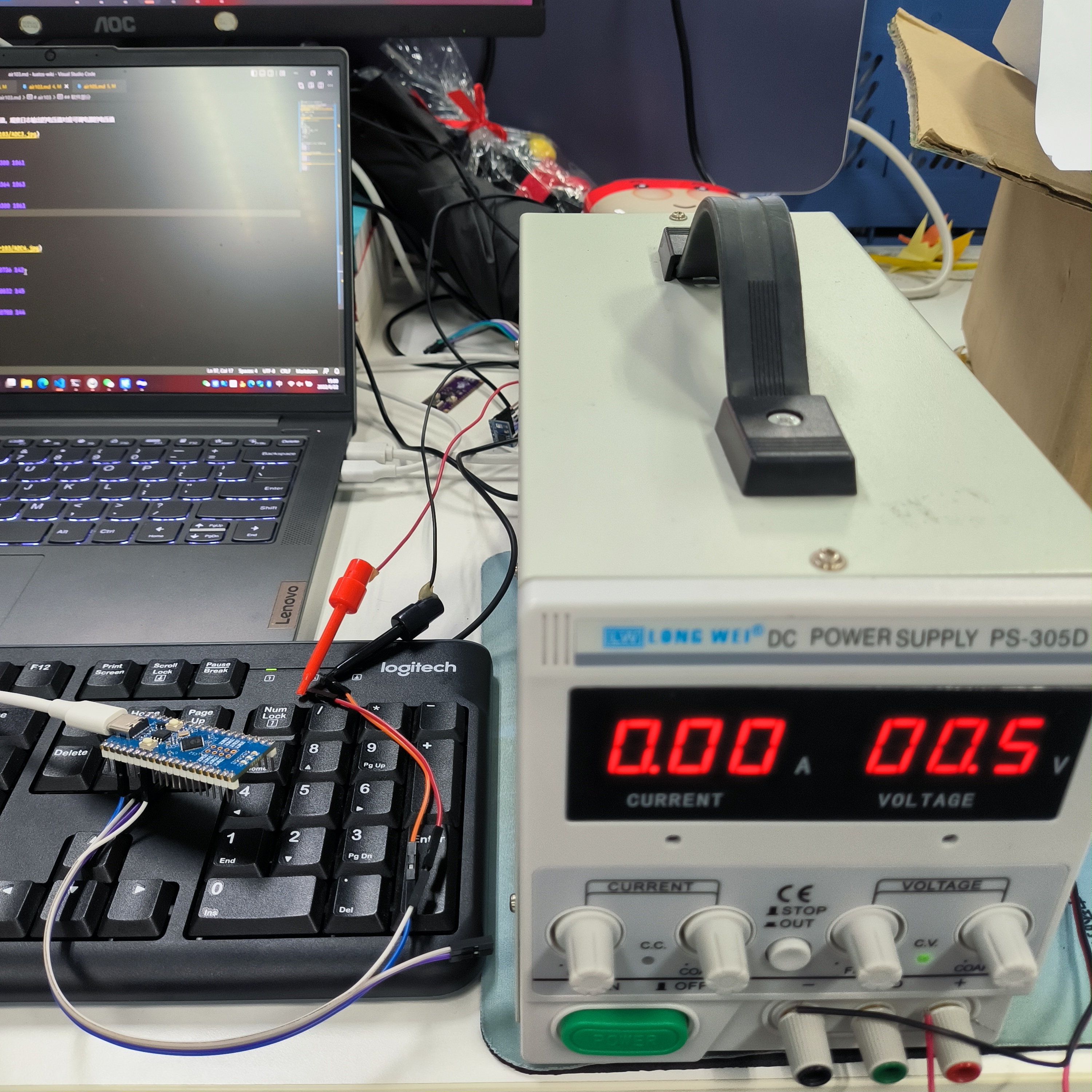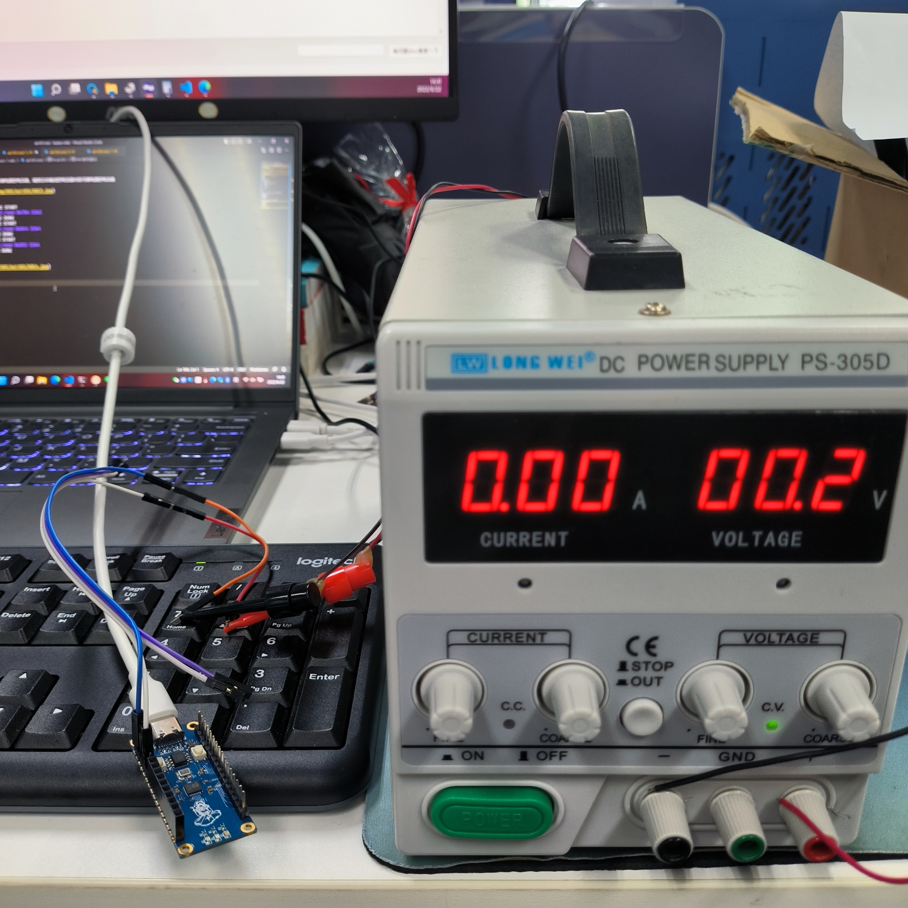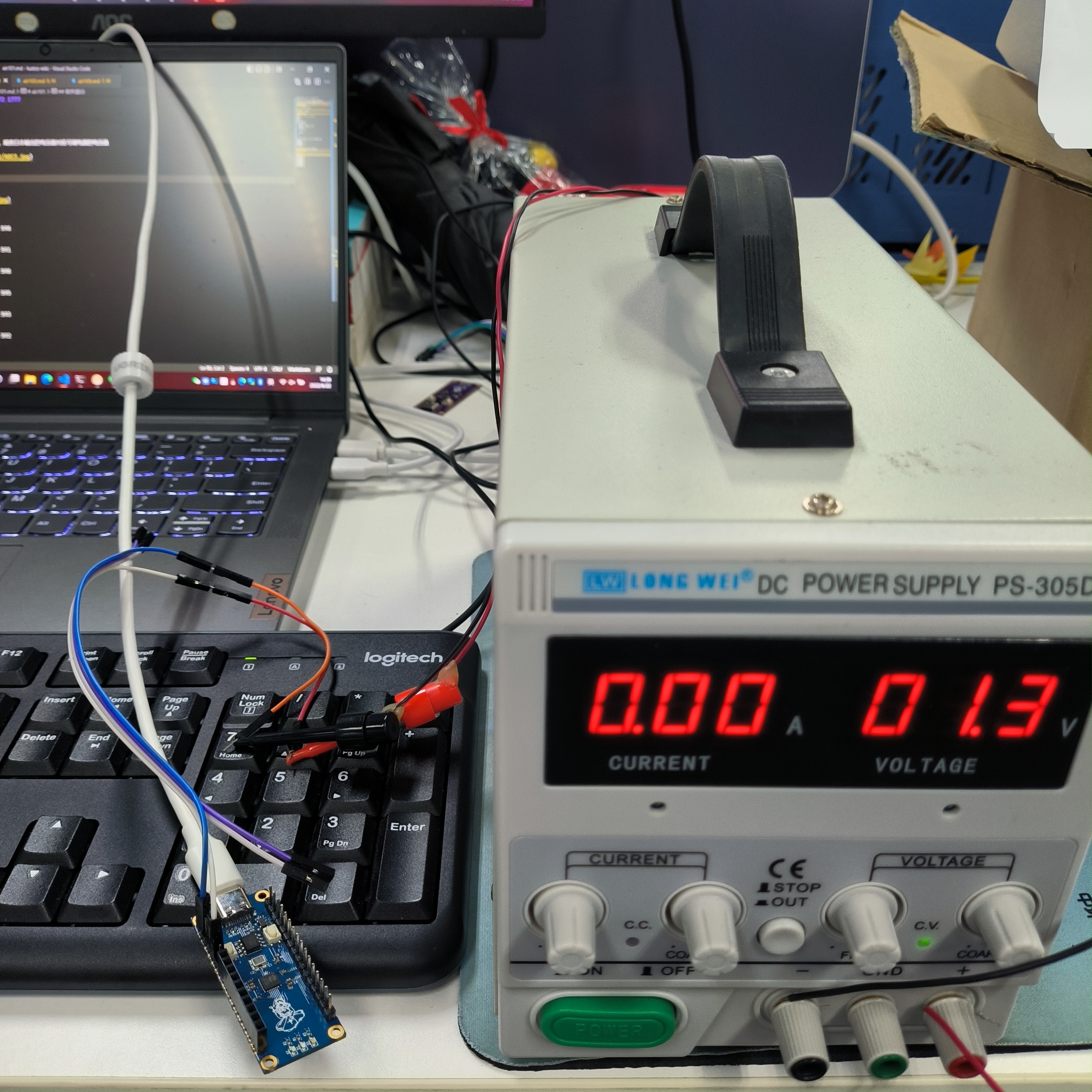 Air105开发板一块,可调电源一台,接线示意如下