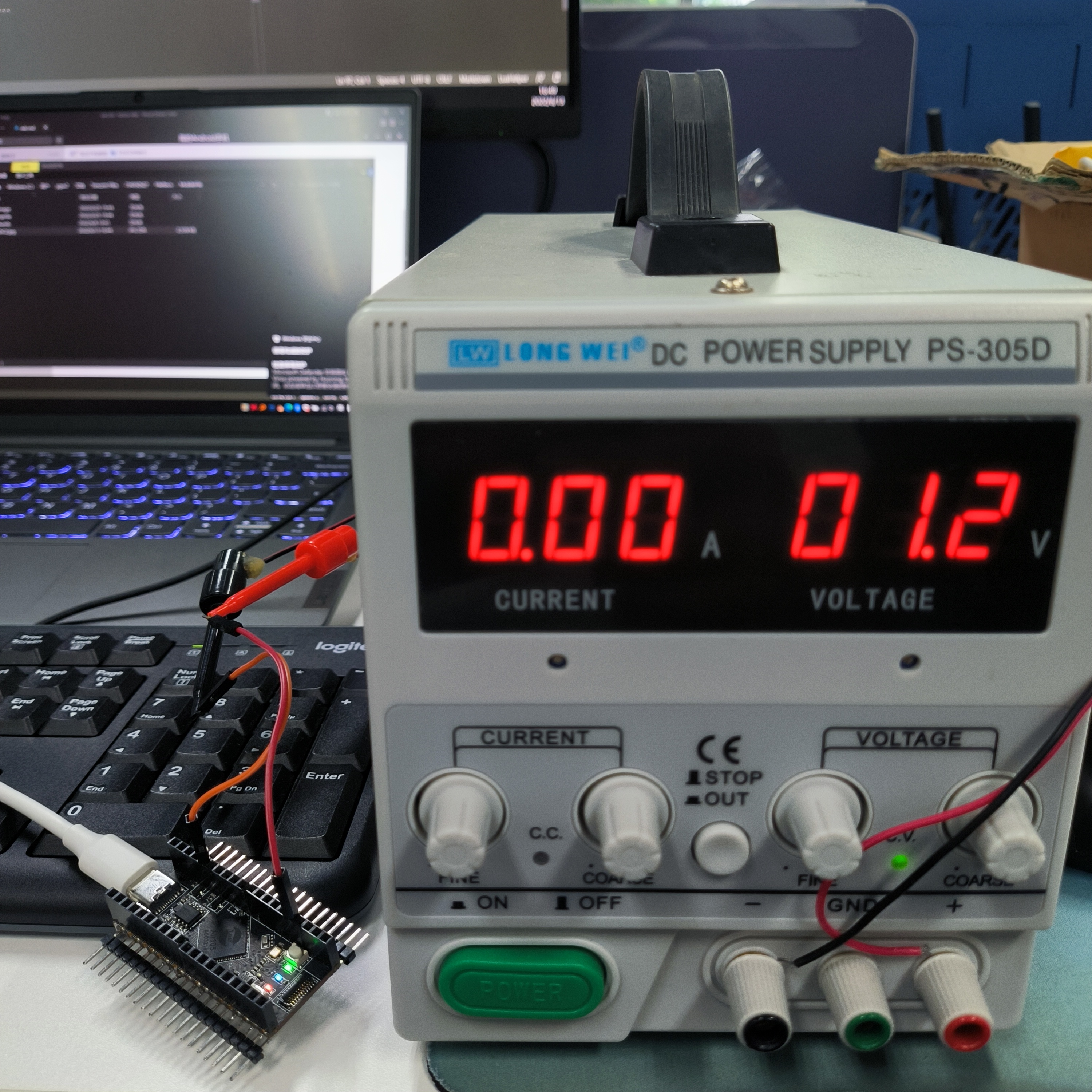 注意:先打开可调电源,调到1.8V以下,再连接电源与开发板,防止直接连接开机电压过高烧毁芯片