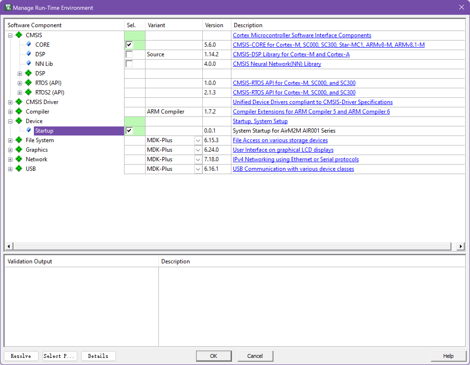 勾选CMSIS下的CORE和Device下的Startup,即可自动配置启动文件