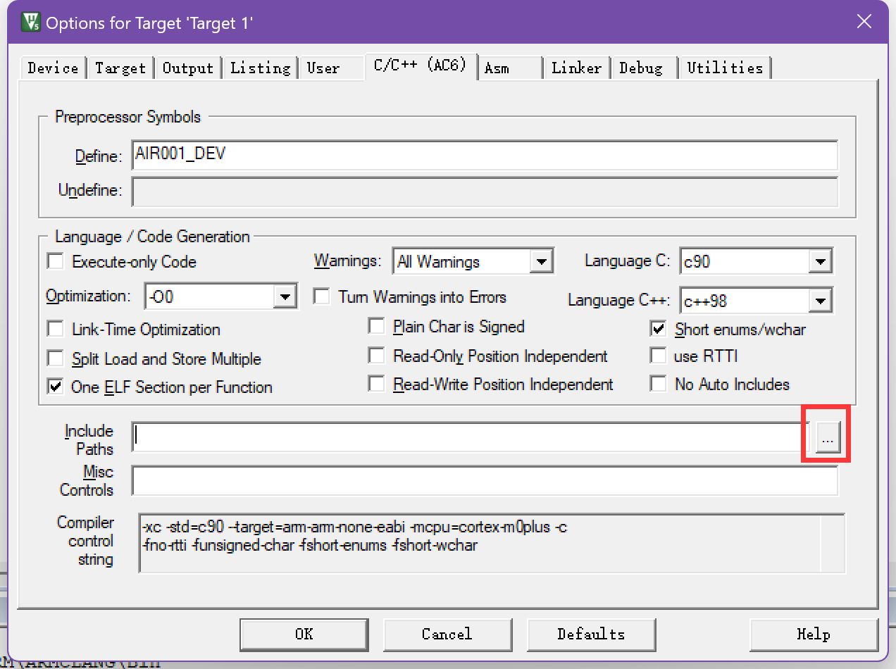 点击工具栏的魔术棒按钮打开 Options for Target窗口